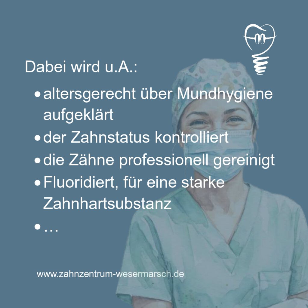 Wir bieten Ihnen hier in Berne, eine gründliche und schonende professionelle Zahnreinigung (PZR), die Ihre Mundgesundheit optimal unterstützt. Unsere erfahrenen Dentalhygienikerinnen entfernen schonend Zahnbelag, Verfärbungen und Zahnstein – auch an schwer zugänglichen Stellen.